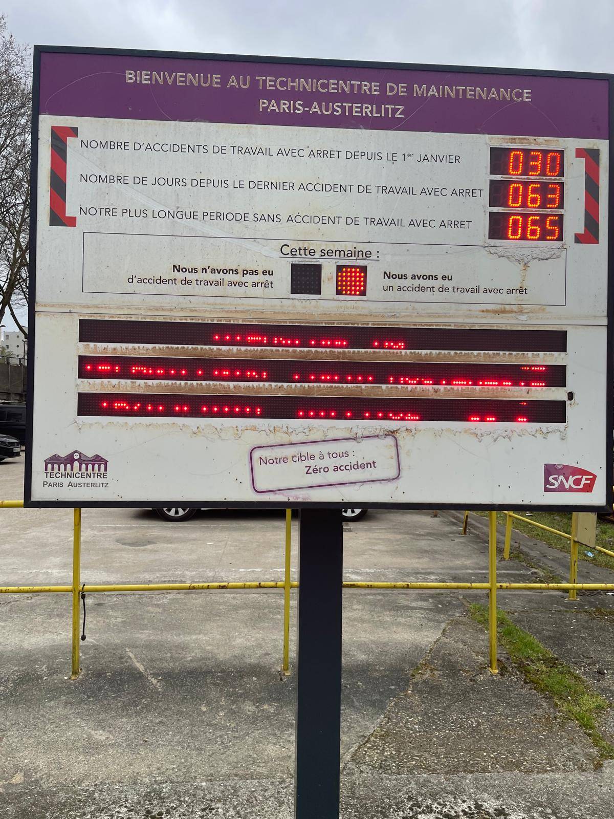 Intervenir sur un site comme le Technicentre Paris-Austerlitz, c'est évoluer dans un environnement à forts risques électriques, où la rigueur et la conformité réglementaire ne sont pas négociables. La culture sécurité y est omniprésente — le tableau d'affichage à l'entrée du site, qui comptabilise chaque jour sans accident de travail, en témoigne